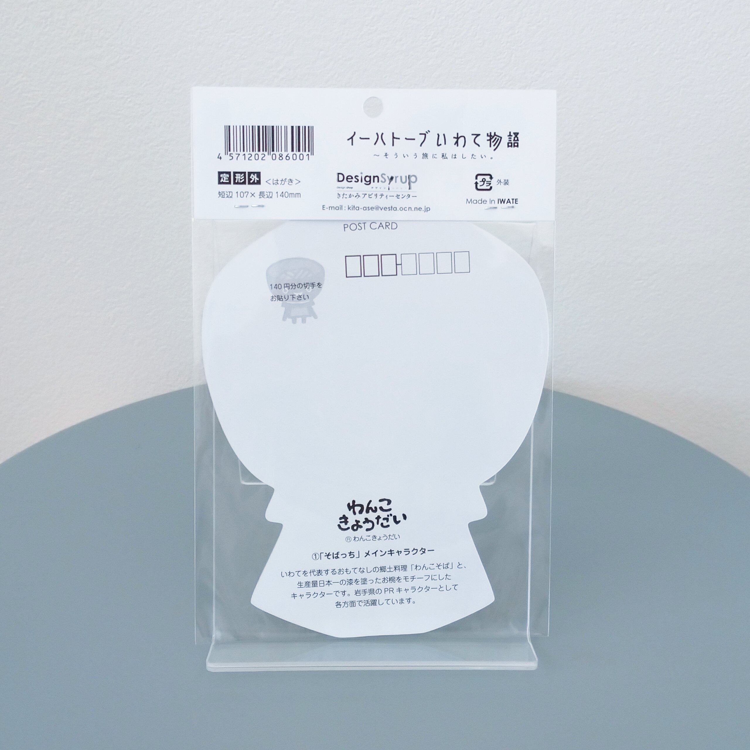 いわての漆器とわんこそばがモチーフのメインキャラクター「そばっち」のポストカードです。