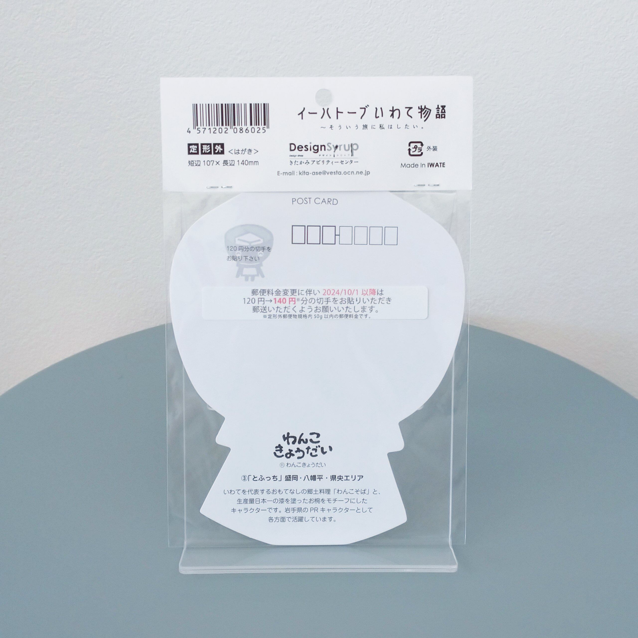 いわての漆器ととうふがモチーフの、盛岡・八幡平・県央エリア代表「とふっち」のポストカードです。