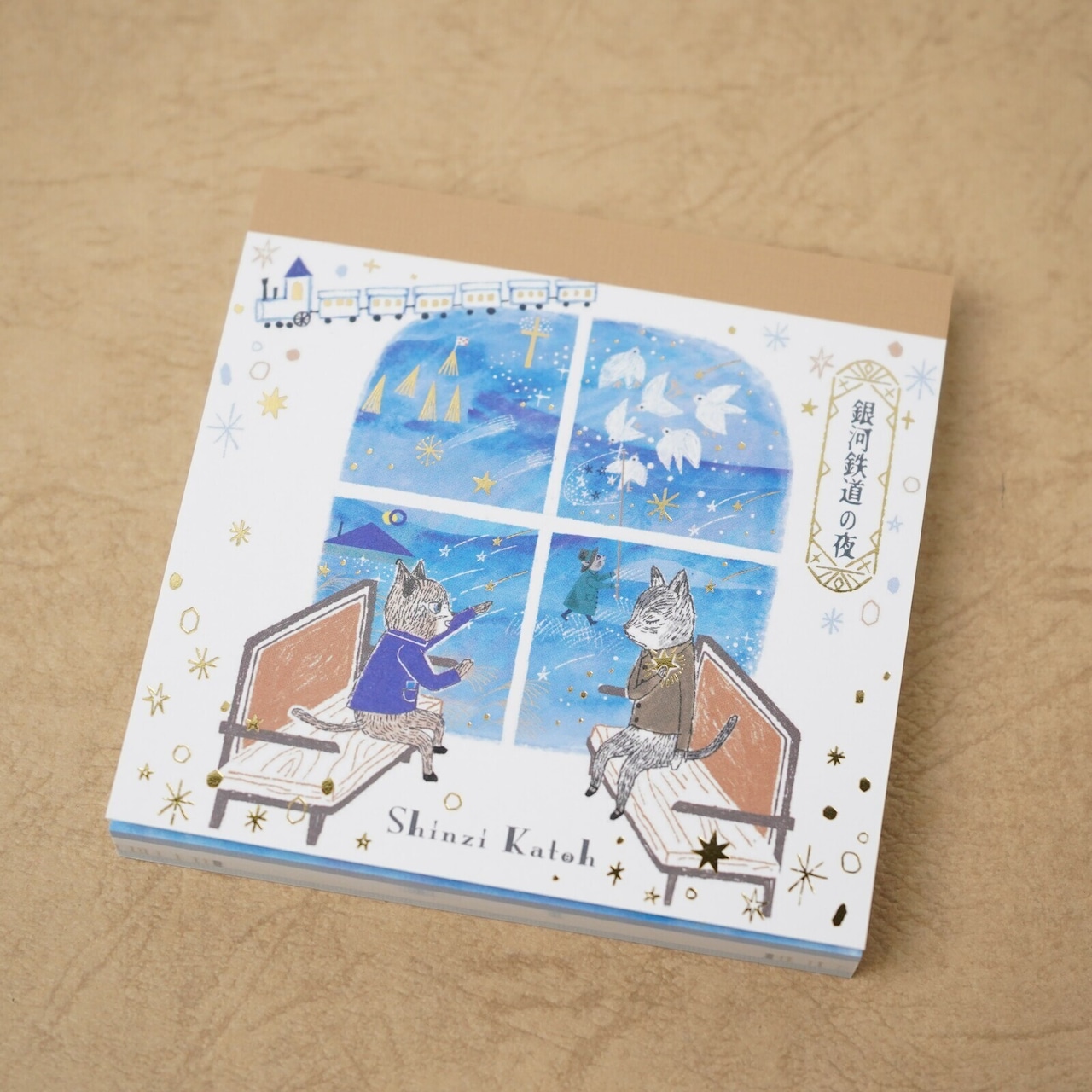 Shinzi Katohが描いた、宮沢賢治の代表作『銀河鉄道の夜』がブロックメモになりました。