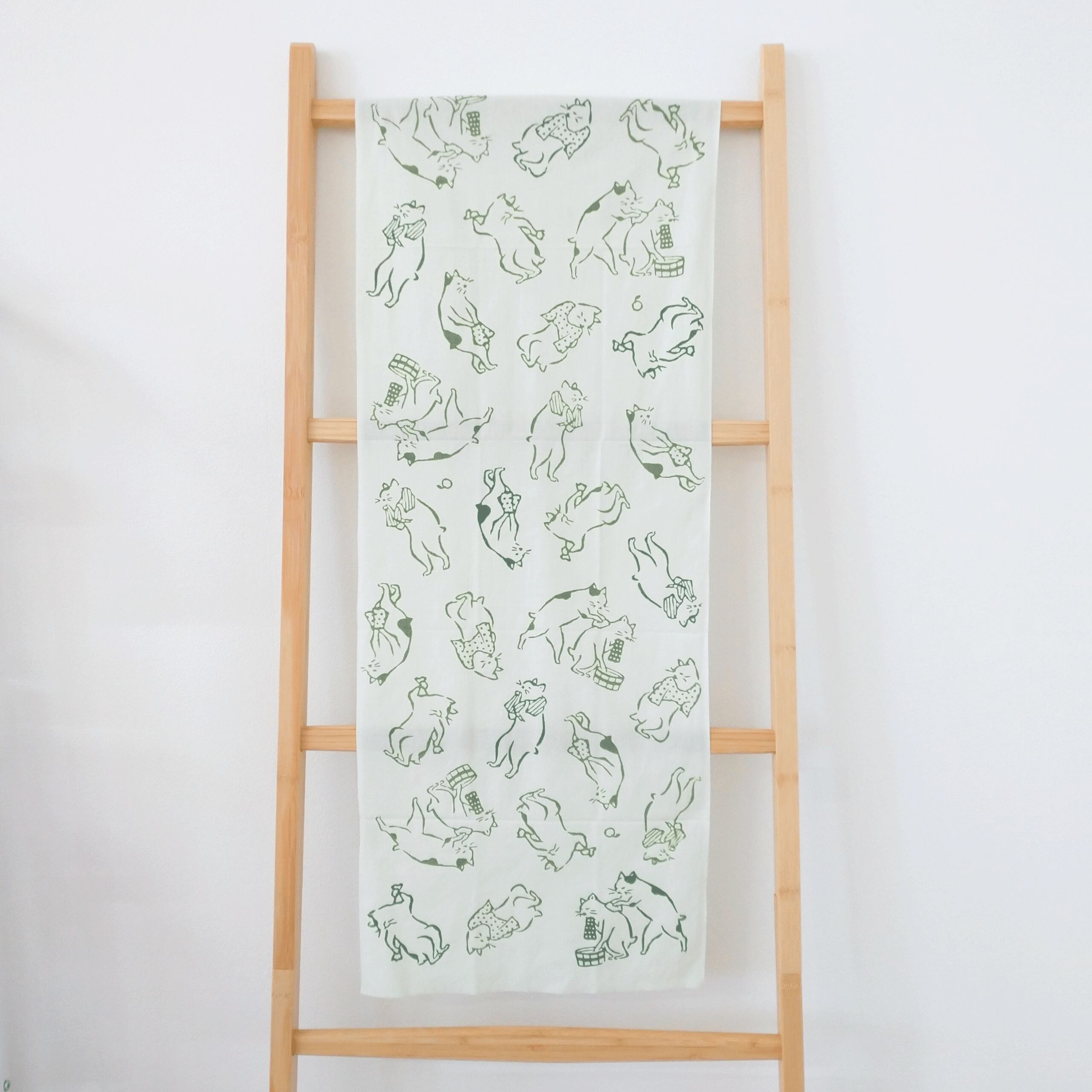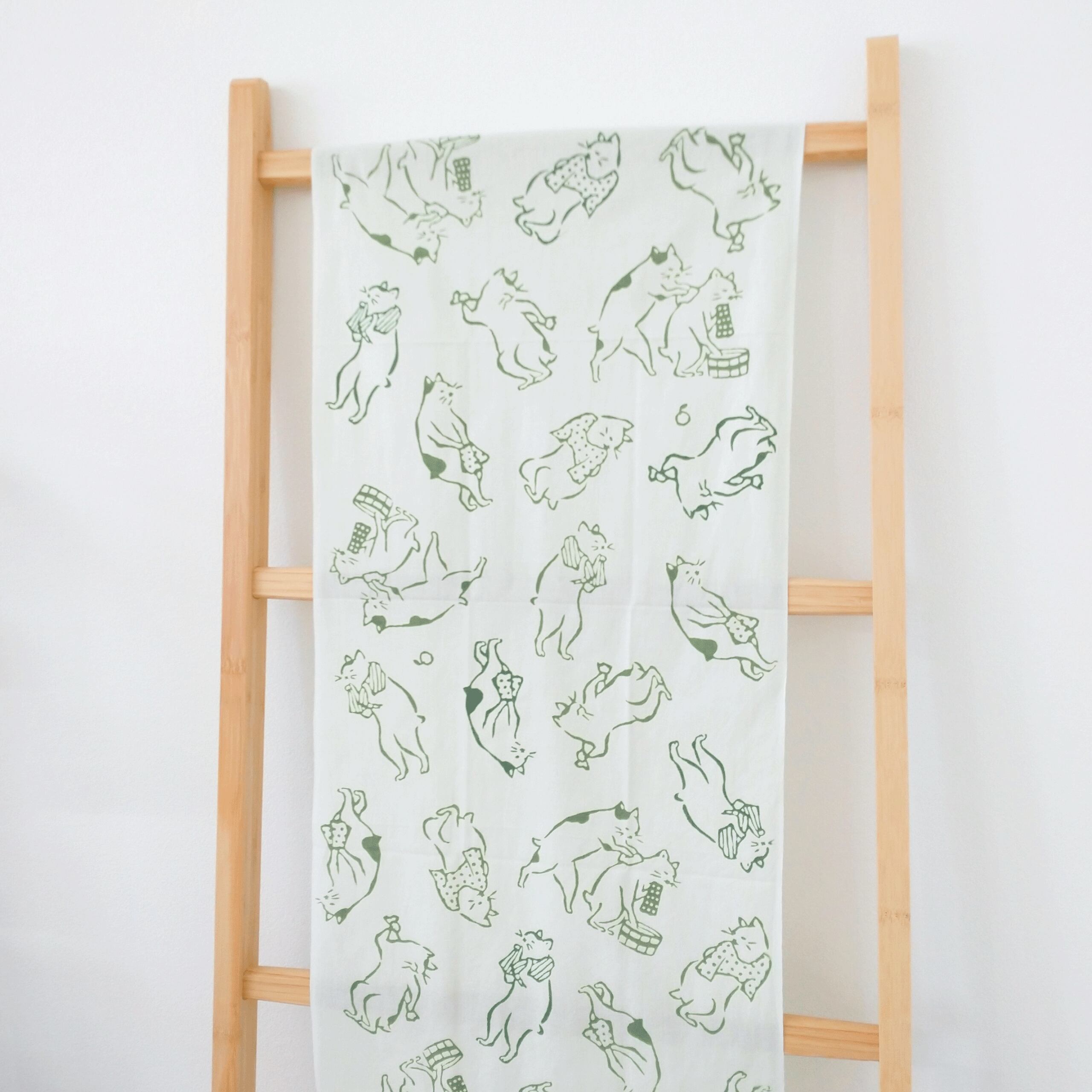 春の訪れを感じさせる爽やかなよもぎ色で、お風呂のお供に持ち歩くのはもちろん、猫好き・渋好みの方の普段使いにもおすすめです。