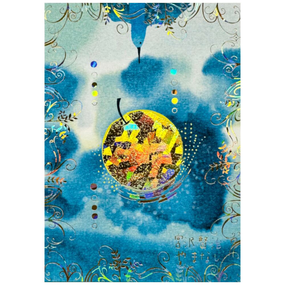 Shinzi Katohが描く宮沢賢治の世界に、ゴールドホログラム箔を纏わせ、 光り輝く幻想的な仕上がりとなったポストカードです。